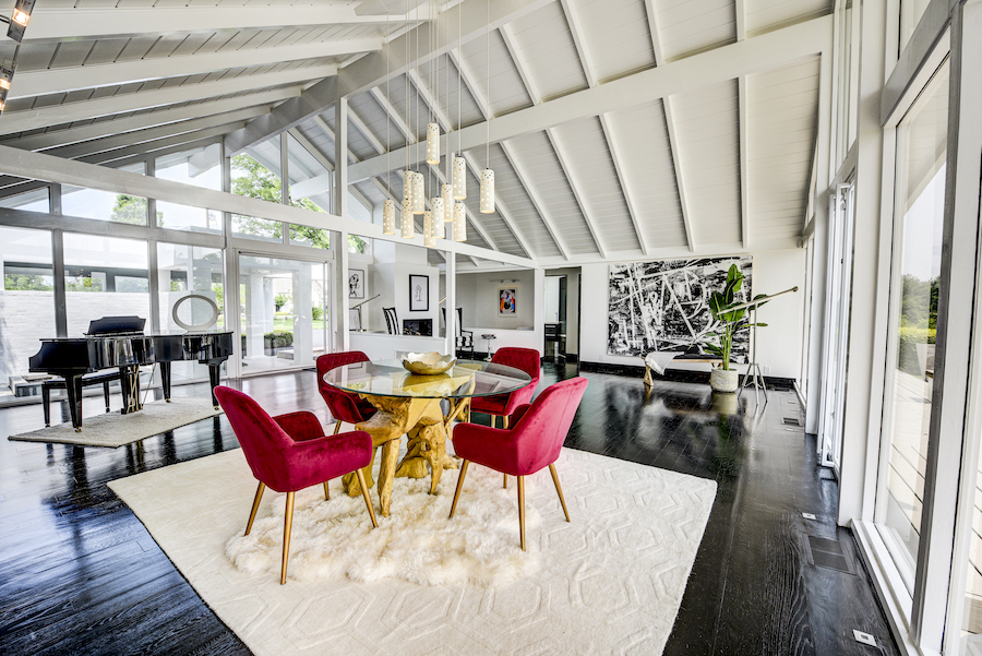 Walk through that large, pivoting single-panel glass front door, however, and you immediately enter a decidedly 1950s modern residence that’s managed to keep up with the times thanks to renovations and an expansion.