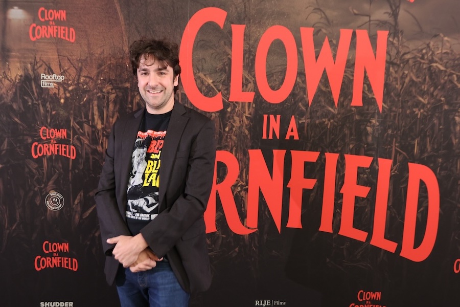 And this movie adaption is taking things to the next level. Cesare has been on a whirlwind tour promoting the movie, often joining the cast and director Eli Craig (who made the pitch-perfect horror-comedy Tucker and Dale Vs. Evil) for interviews at festivals and red carpets. We caught up by phone on Monday, one day before a big preview screening at the Film Society, and four days before Clown in a Cornfield (the movie) opens nationwide.