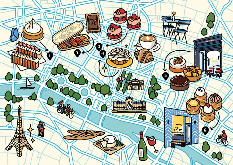 Your map to the best pastries in Paris / Illustration by Kati Lacker