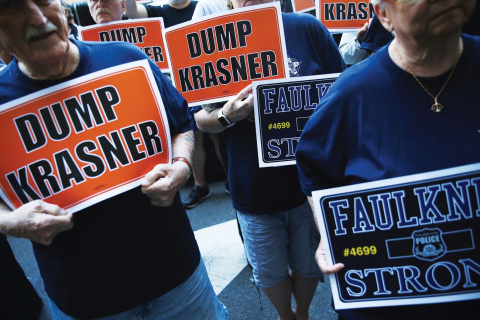 Anti-Krasner sentiment at a 2019 rally / Photograph by Tim Tai/Philadelphia Inquirer/Associated Press